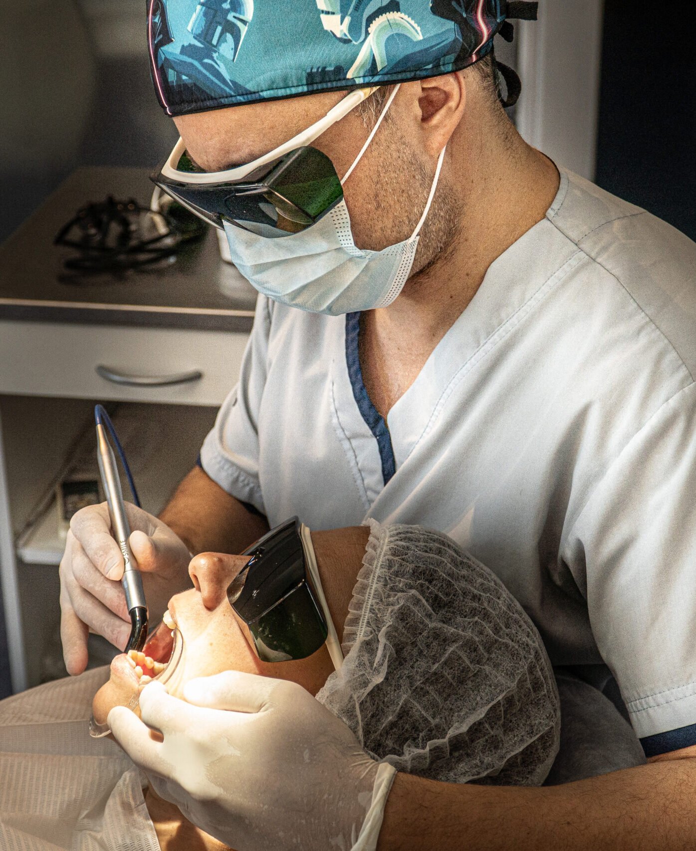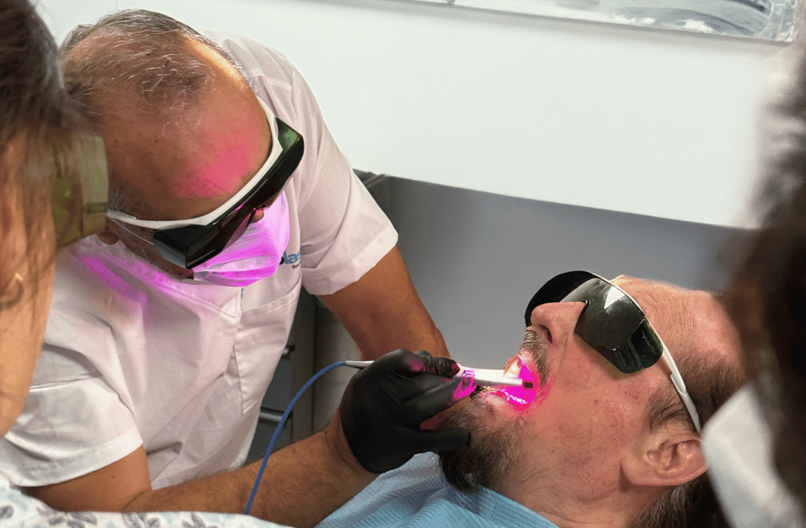 El láser mejora la desinfección del área quirúrgica, favorece la cicatrización y aumenta la estabilidad inicial del implante.
